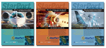 International print campaign for StarPort USA, providing aircraft services at the Orlando Sanford International Airport, published in Aviation International News.