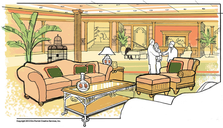 KPCS creates pre-construction conceptual renderings; such as this architectural interior sketch for the Amelia Inn and Beach Club,