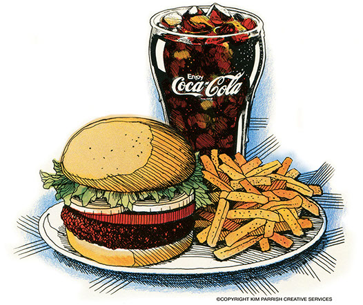 KPCS original illustration for Coca-Cola® Marketing; this type of spot art is useful for menus, tent cards and other publications requiring a stylized look.