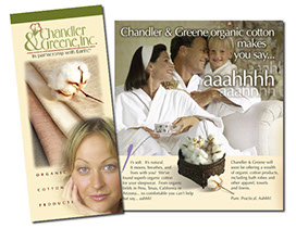 This corporate image collateral and brand were created to promote the organic cotton products of Chandler & Greene, Inc.