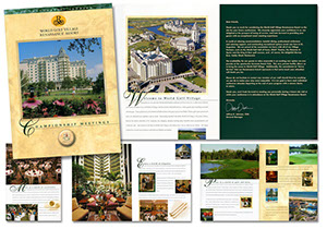 Golf resort collateral—16 page stitched pocket folder created for the World Golf Village Renaissance Resort in St. Augustine, Florida.