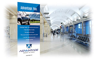 KPCS large format designs for Advantage® Rent A Car can be seen in airports, hotels and other business facilities across the USA.