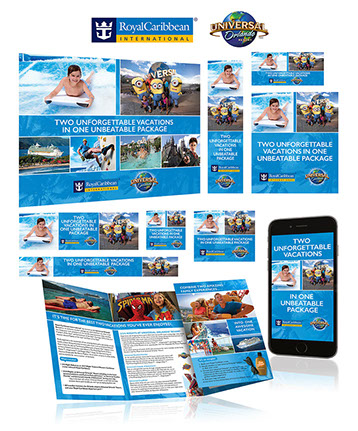We teamed up with Royal Caribbean International® and Universal Orlando® Resort to help promote an exclusive land and sea vacation package not available from any other cruise line. Through a mix of digital and print (above), guests were invited to enjoy their next adventure on the world’s most innovative ships and theme parks. Our work for this successful campaign included dozens of digital ads and thousands of brochures promoting "Two Unforgettable Vacations."