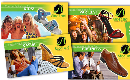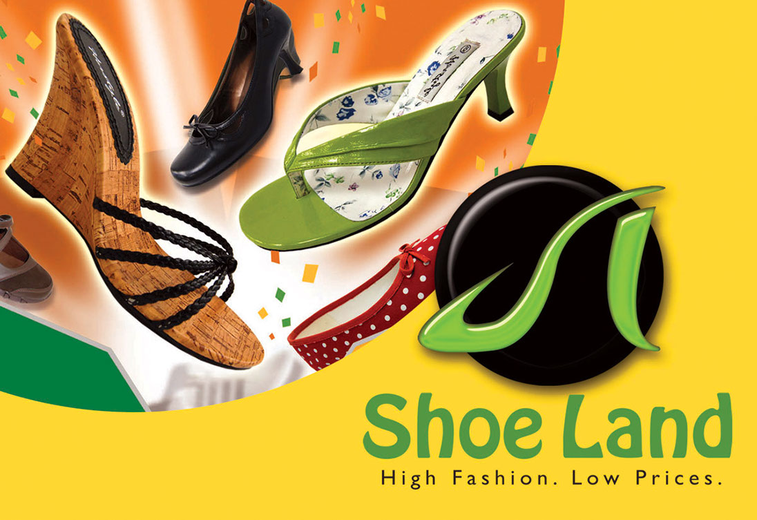 Shoe Land provides footwear for all occasions, promising its customers "High Fashion. Low Prices." Our creative graphic design work for this client included a brand new logo, which features a freestyle, bright green "SL" designed in the shape of a shoe, resting on a stylish black disc.